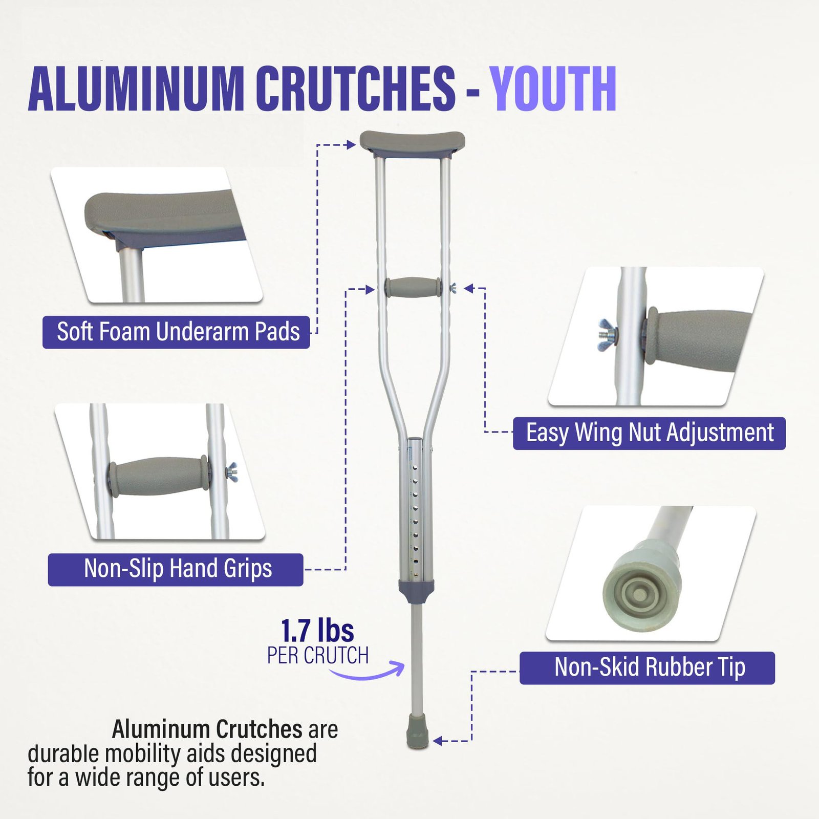 Features: Non-slip base, cushioned underarm support, height-adjustable, lightweight