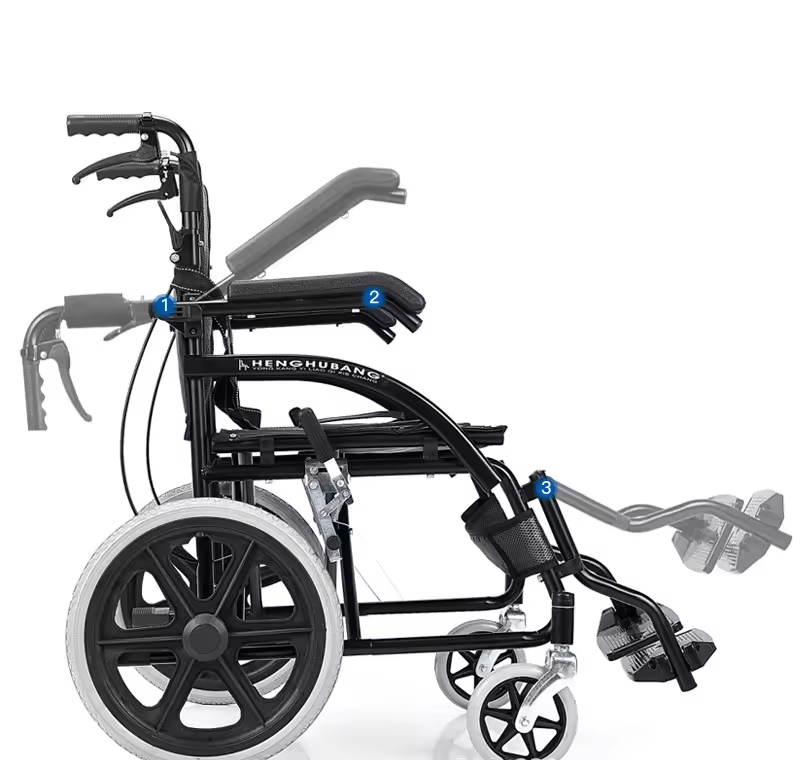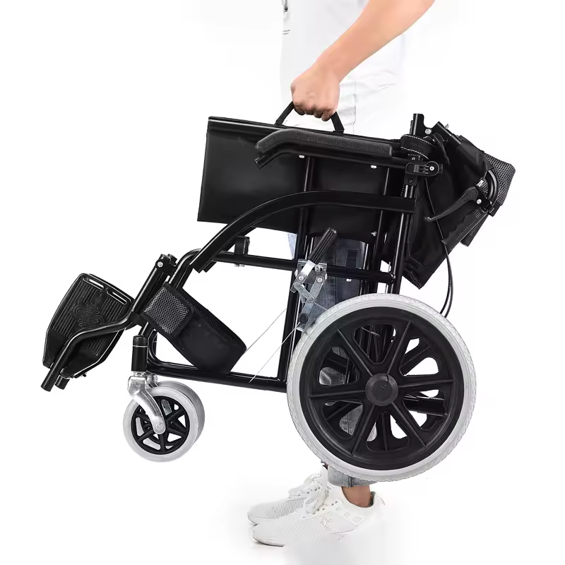 This heavy-duty folding manual wheelchair is designed for comfort and flexibility. With removable or flip-back armrests, users can easily transfer from bed or chair. Its large rear wheels ensure smooth mobility on various surfaces, supporting users up to 300 lbs (136kg).