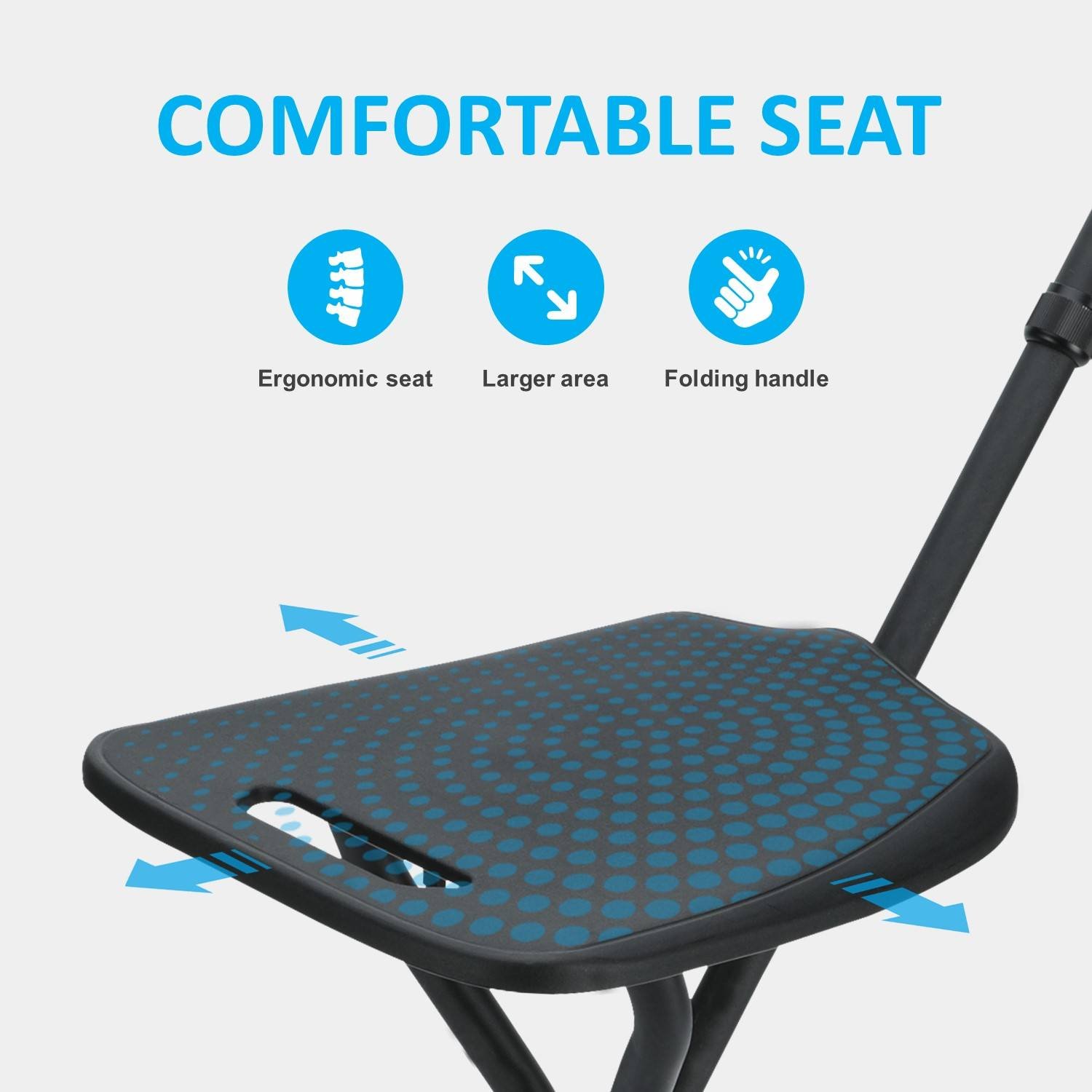 This telescopic folding cane transforms into a sturdy 3-legged seat, making it ideal for the elderly or those needing intermittent rest. Its aluminum alloy construction ensures strength without added weight, while the ergonomic seat and handle provide both comfort and functionality. Perfect for queuing, walks, parks, or travel.